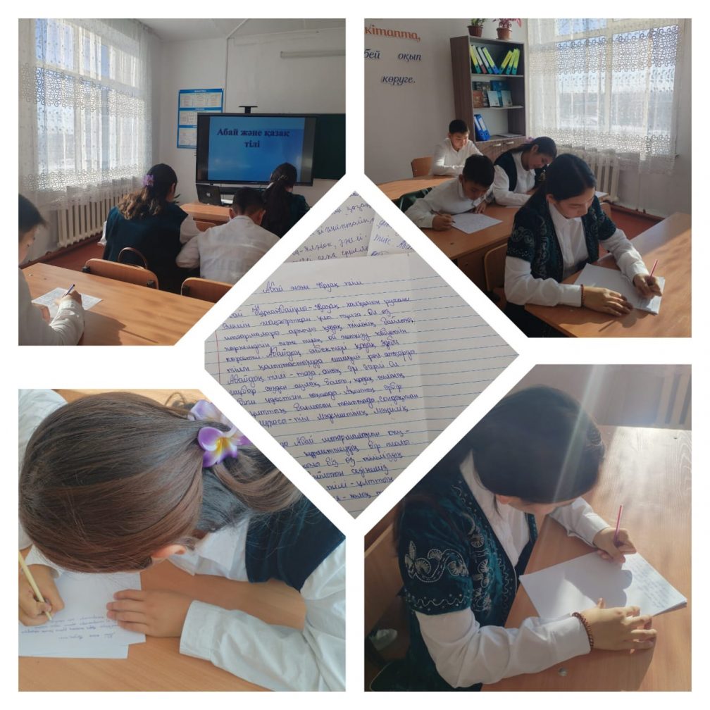 Қазақ тілі онкүндігі аясында 8–9 сынып оқушылары арасында «Абай және қазақ тілі» тақырыбында эссе жазу байқауы өткізілді. Оқушылар өз шығармалары арқылы Абайдың тілге, ұлтқа, білімге деген көзқарасын терең түсінетіндігін көрсетті.