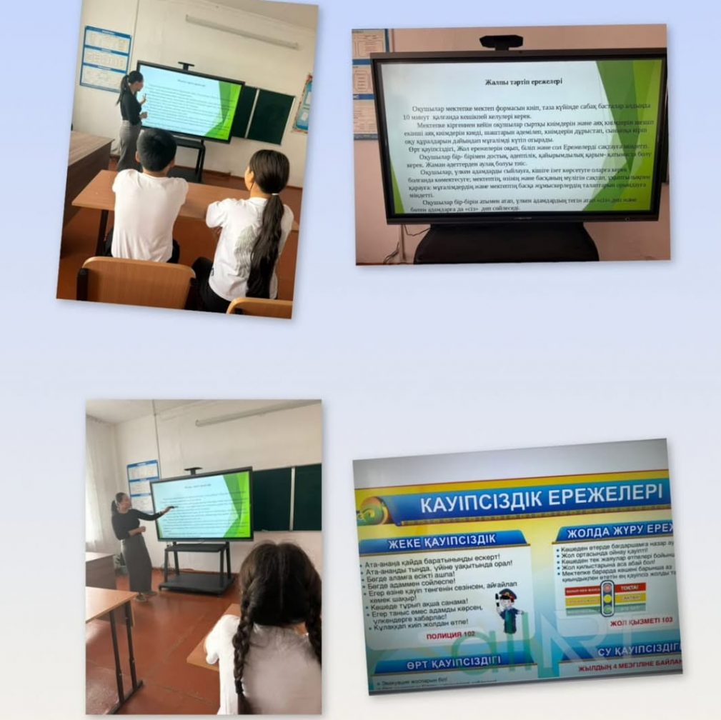 Бүгін 5 сынып оқушыларына қауіпсіздік ережесі бойынша нұсқаулық өткізілді. Балаларға өрт қауіпсіздігі, жолда жүру ережесі және төтенше жағдай кезіндегі әрекеттер түсіндірілді.