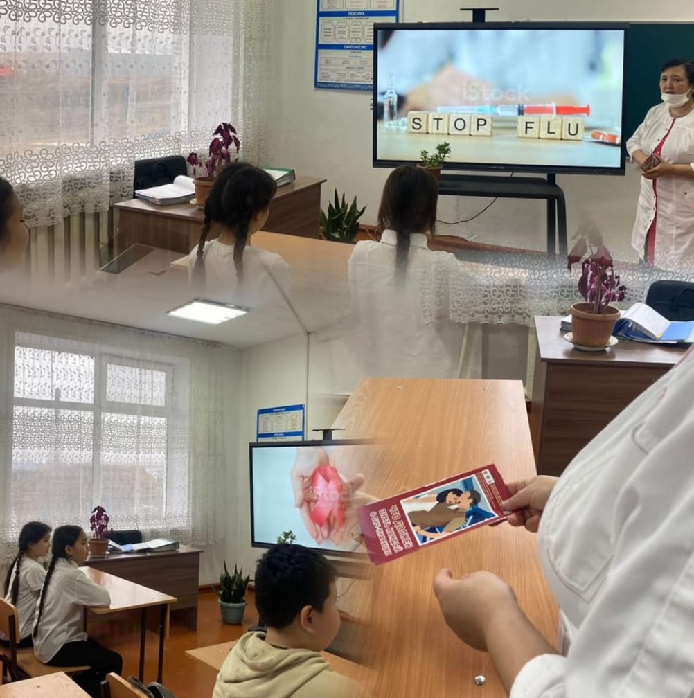 Оқушылардың денсаулығын қорғау және қауіпті індеттердің алдын алу мақсатында мектеп медбикесі Туканова А.Ж "Өмірді сақта-ЖИТС-ке жол жоқ!" тақырыбында танымдық әңгіме өткізді. Кездесу барысында медбике ЖИТС туралы түсінік беріп, оның адам ағзасына әсері, таралу жолдары мен алдын алу шараларын жан -жақты түсіндірді.